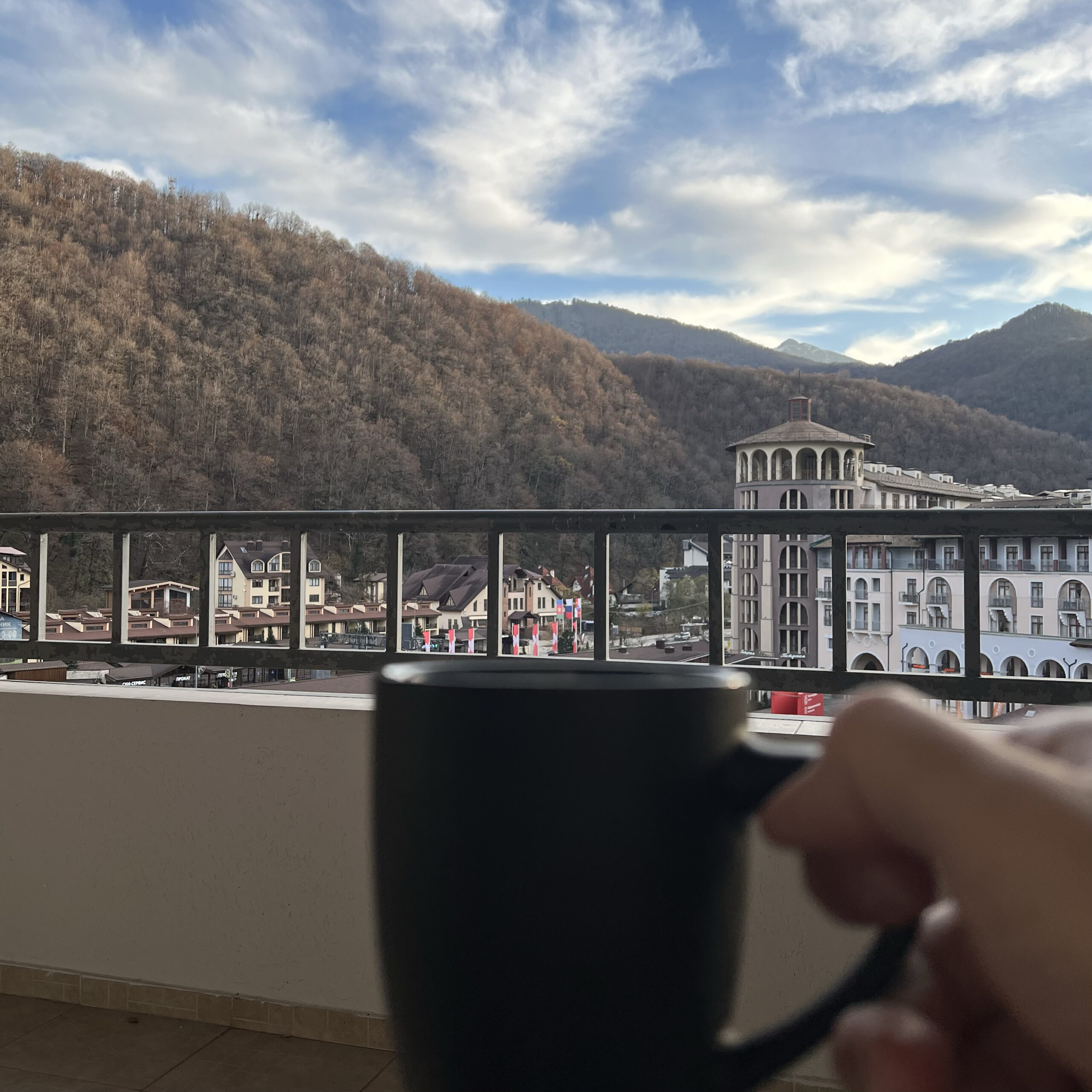 Это рабочую поездку удалось начать с кофе на балконе, теплые дни в горах 🗻